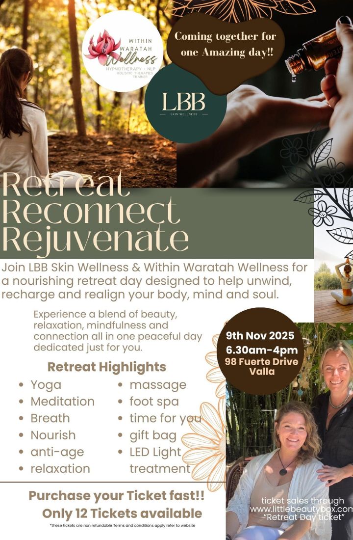 Join LBB Skin Wellness & Within Waratah Wellness for a nourishing retreat day designed to help you unwind, recharge and realign your body, mind and soul.
